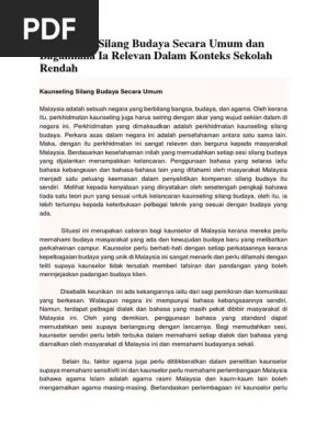 Begitulah persoalan yang dikemukakan oleh pengkaji dalam meneliti aspek keperluan kopentensi kaunseling silang budaya. Pdf | kajian ini dijalankan untuk mengkaji dan mengenal pasti kecekapan kaunseling silang budaya kaunselor terhadap klien yang memiliki .